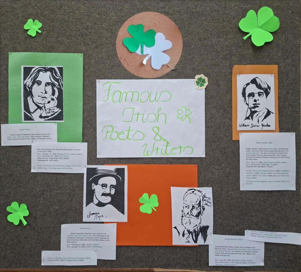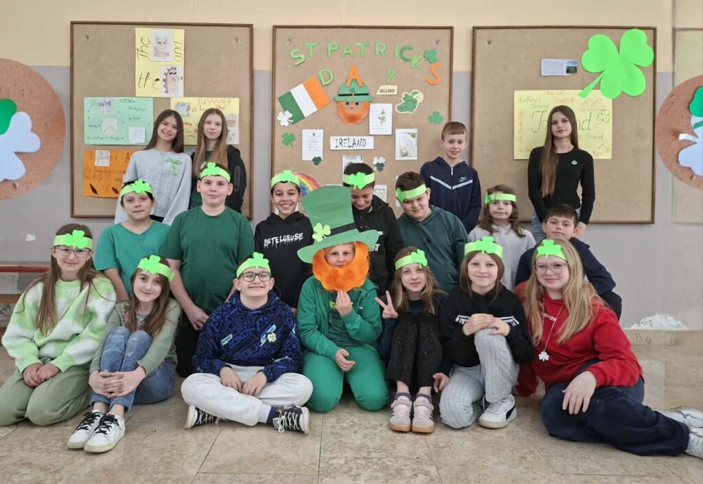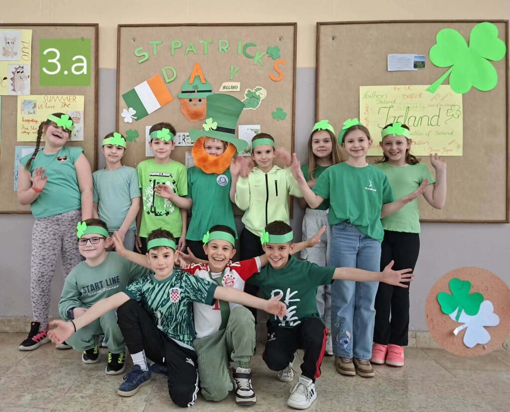 U utorak, 17.3., u našoj školi je obilježen Dan svetog Patrika kroz niz kreativnih i edukativnih aktivnosti. Učenici su se upoznali s irskom kulturom, tradicijom i običajima, a posebna pažnja posvećena je simbolima poput djeteline i zelene boje. Mnogi su se odjenuli u zeleno kako bi dodatno dočarali duh ovog veselog dana. Nastavnica Jasna Rigo učenicima je kroz zanimljive igre i pano približila povijest i značenje ovog blagdana. Obilježavanje Dana svetog Patrika proteklo je u veselom i prijateljskom ozračju, a učenici su na zabavan način naučili nešto novo o drugoj kulturi.