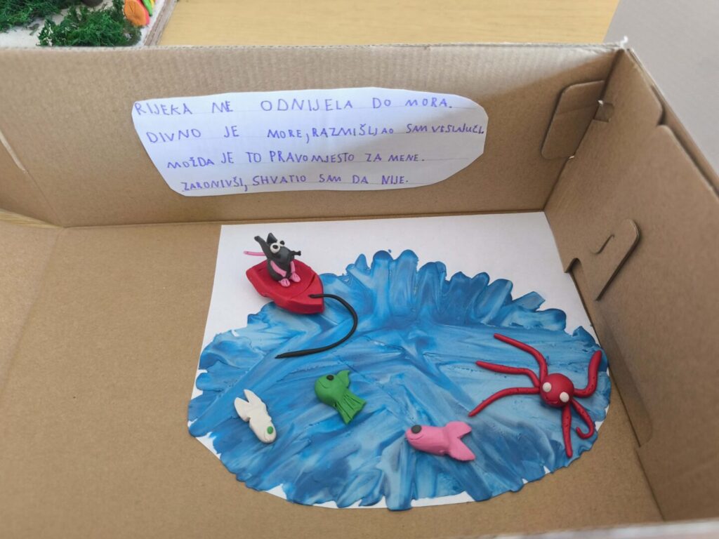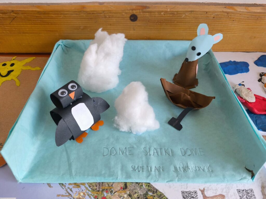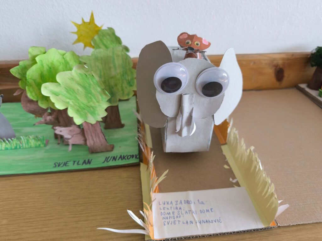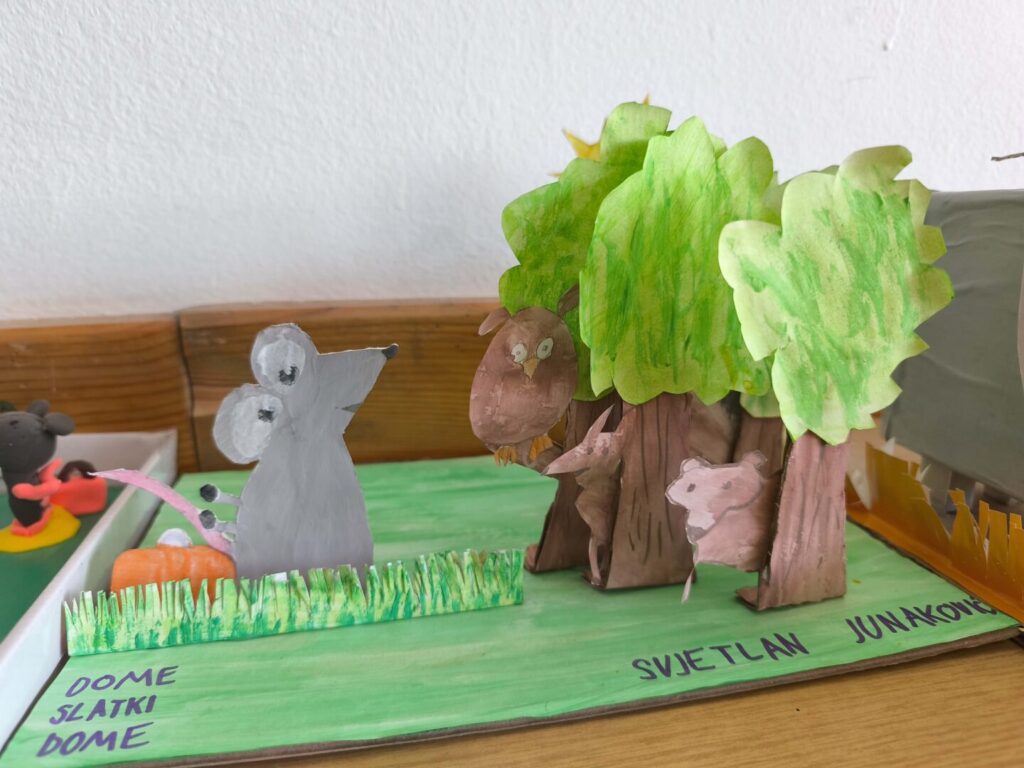 Učenici prvog razreda su u sklopu školske lektire čitali basnu „Dome, slatki dome“ autora Svjetlana Junakovića. Riječ je o kratkoj i poučnoj priči koja govori o malome mišu u potrazi za novim domom. U priči miš odlučuje napustiti svoj dom i krenuti na putovanje kako bi pronašao bolje mjesto za život. Na svom putu susreće različite životinje – sovu, majmuna, slona, devu, krokodila i pticu Lu. Sve ga one ohrabruju i pomažu mu tijekom njegova putovanja. Međutim, kada miš napokon stigne do zemlje pingvina, gdje vlada velika hladnoća, shvaća koliko mu zapravo znači njegov stari dom. Tada uviđa da je njegov topli i sigurni dom najbolje mjesto za život. Ova basna nosi važnu pouku – često tek kada odemo daleko shvatimo koliko nam vrijedi ono što već imamo. Prvašići su imali kreativan zadatak interpretirati priču i prikazati ono što ih se dojmilo u tehnici modeliranja plastelinom ili papirom . Pogledajte njihove radove!