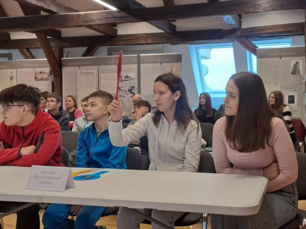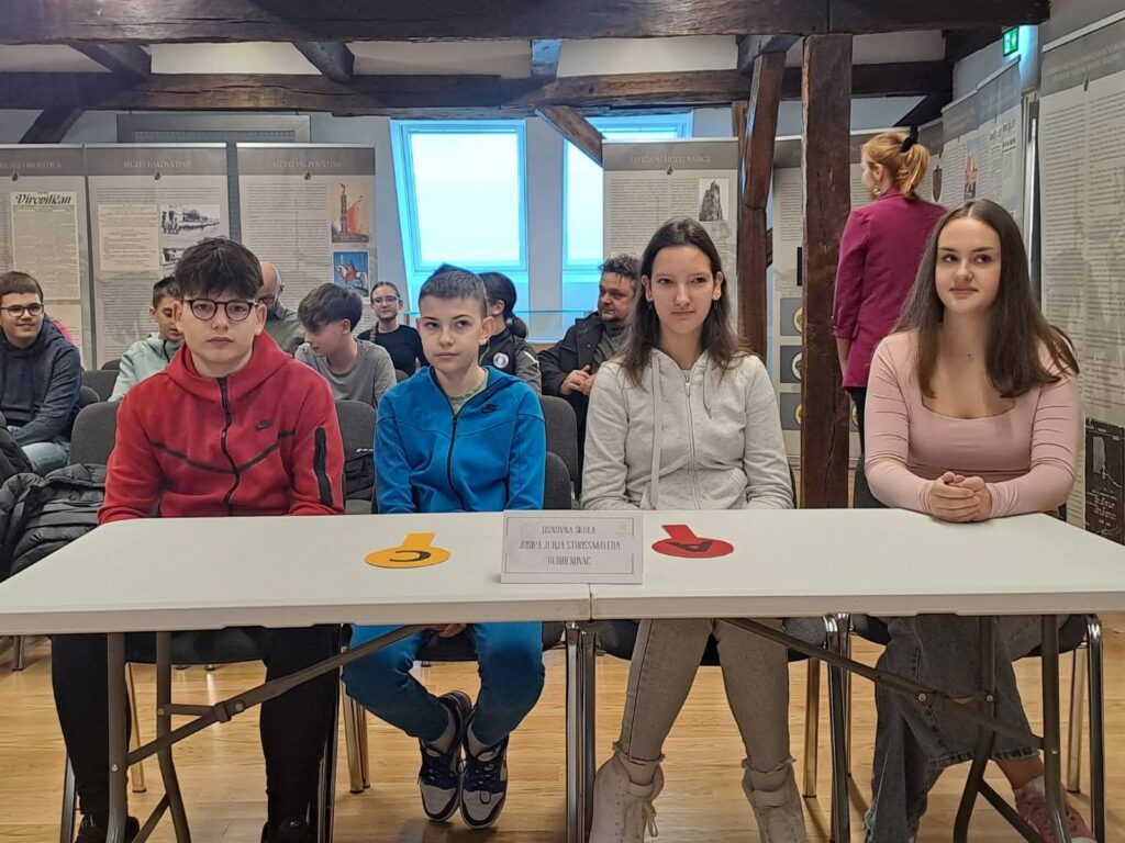 Našice. Dio tog povijesnog događaja bili su učenici sedmog razreda Gašpar Ćaleta Marjančević i Fran Patko te učenice osmog razreda Anamari Fridl i Saška Gojković (uz svoju nastavnicu Borislavu Lehki, prof.pov. i hrv.j.). Osim naše škole sudjelovalo je još šest škola našičkoga kraja (obje osnovne škole iz Našica, Feričanci, Jelisavac, Podgorač, Koška ). Kviz je održan povodom 180. obljetnice rođenja Isidora Kršnjavog (1845.-2025.) pa je i kviz bio na temu života i rada Isidora Kršnjavog.