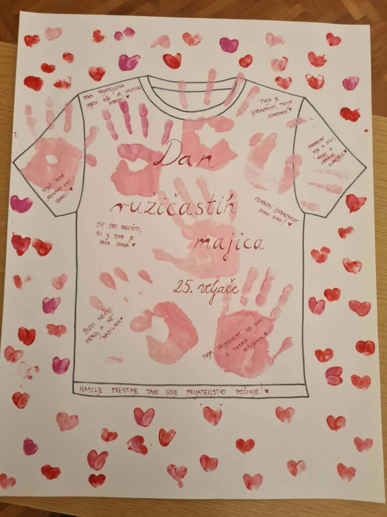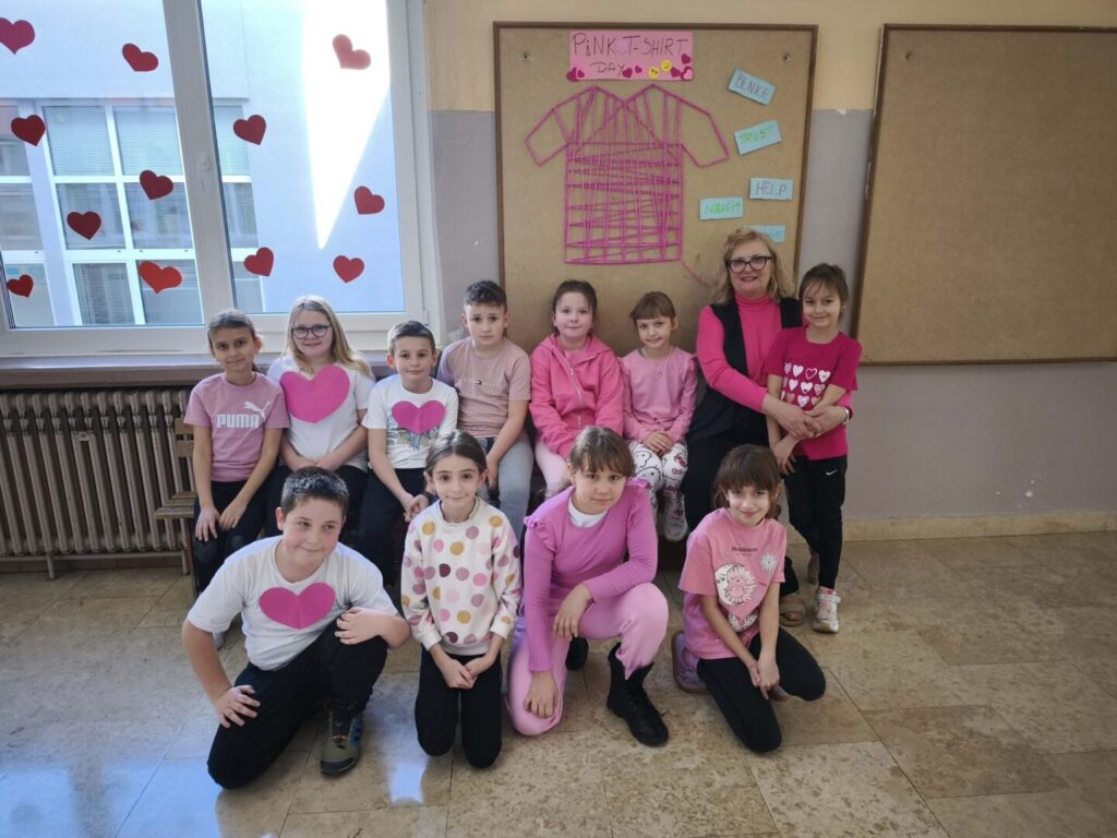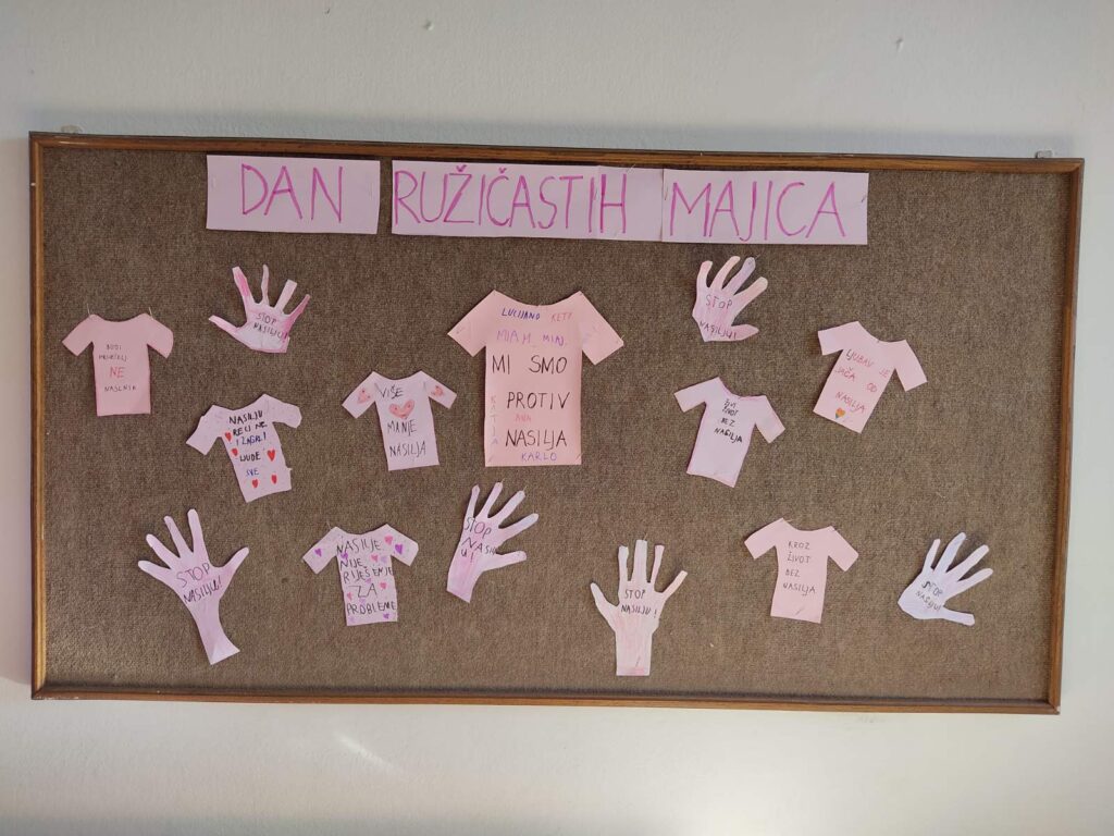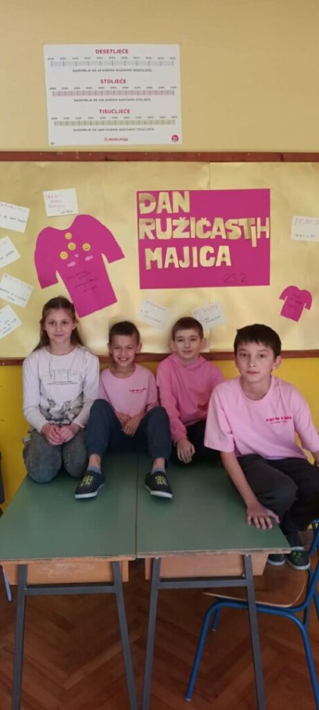 Dan ružičastih majica, poznat i kao Nacionalni dan borbe protiv vršnjačkog nasilja, obilježava se svake posljednje srijede u veljači. U Hrvatskoj je ovaj dan proglašen Nacionalnim danom borbe protiv vršnjačkog nasilja, a obilježili su ga učenici i nastavnici matične i područnih škola. Cilj je podizanje svijesti o problemu vršnjačkog zlostavljanja te promicanje tolerancije, empatije i nenasilnog rješavanja sukoba. U školi se ovaj dan obilježava raznim edukativnim radionicama, predavanjima i nošenjem ružičastih majica ili drugih ružičastih odjevnih predmeta.