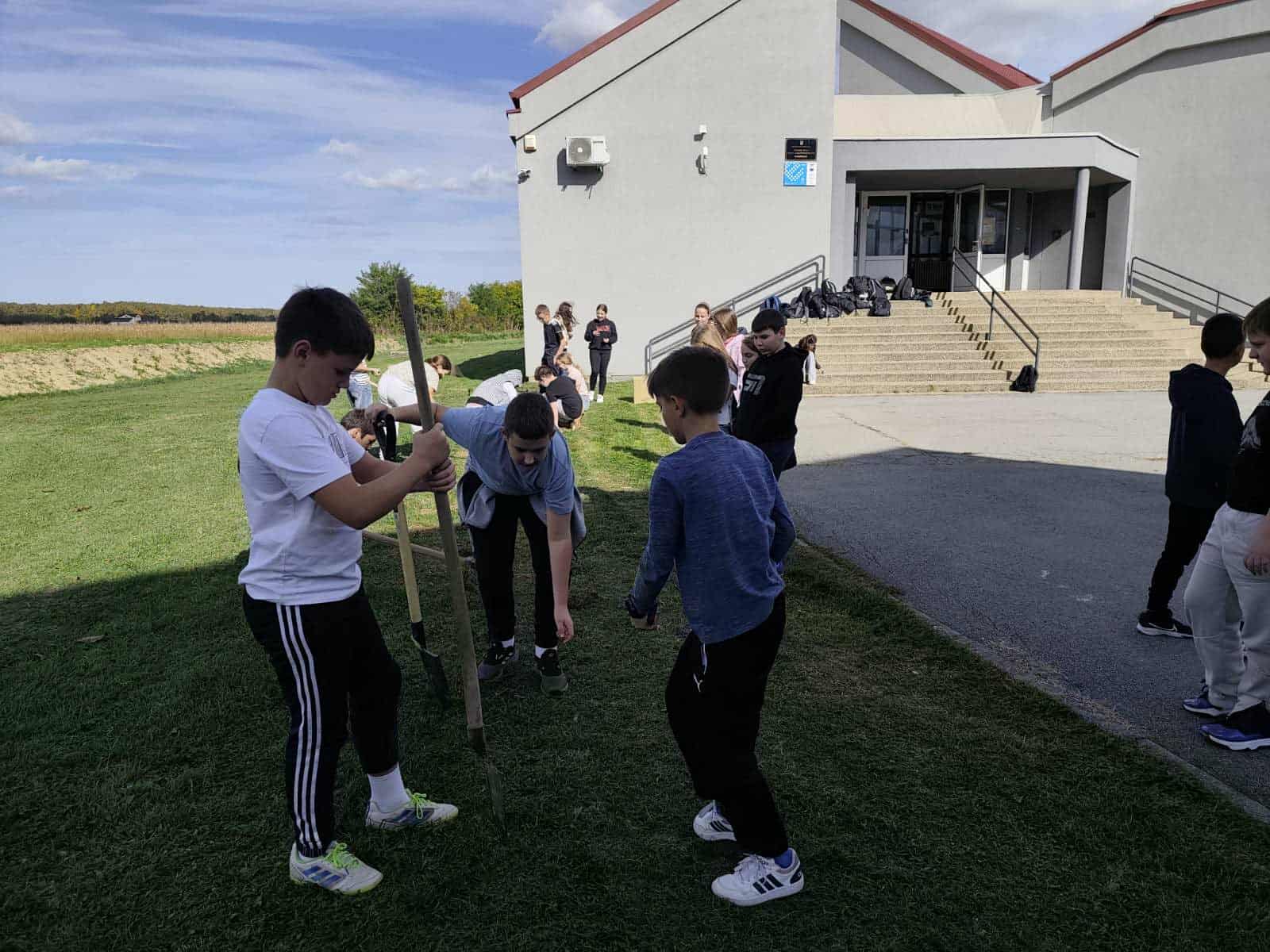 Vrijedni članovi Učeničke zadruge “Stross” su u suradnji sa članovima skupine Prve pomoći i voditeljicama Marijanom Fridl i Tanjom Mihačić Vukoja zasadili čak 30 sadnica lovora i višnje kako bi napravili zeleni zid između glavnog ulaza škole i dvorane. Ako biljke uspiju porasti, za nekoliko godina mogli bi imati pravi zeleni zid! Osim što će biti lijep ukras našeg školskog dvorišta, pružit će zaštitu učenicima u jesenskim i zimskim danima od vjetra koji ovdje zna biti jako neugodan. Radujemo se ovoj maloj radnoj akciji u našem školskom dvorištu i sadnji cvijeća i zelenila.